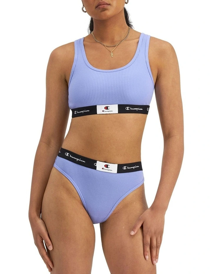 - Wide and soft 28mm jacquard under bust elastic with bold champion branding
