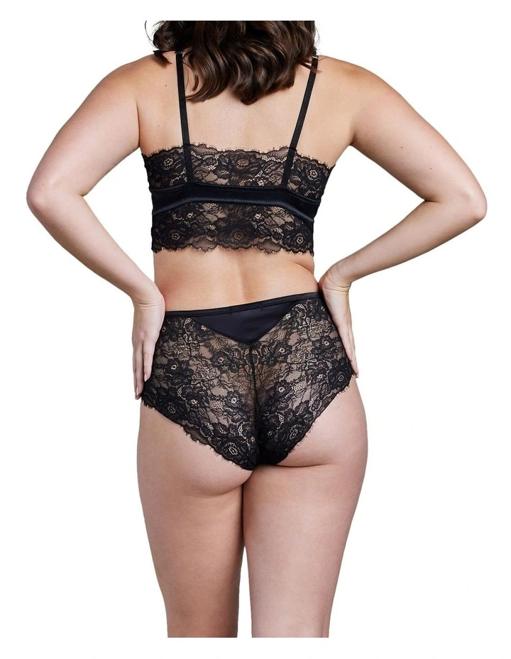 Introducing the Ivy Soft Cup Longline Bra from Pleasure State, launching this season in Black for a classic, statement look. Featuring an adorable buttoned front fastening, the eyelash lace frames soft satin for a relaxed, luxurious finish.