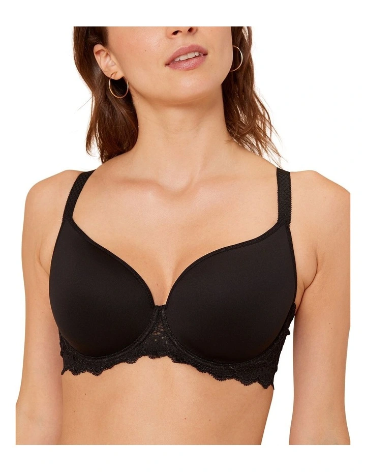 The Caresse 3D Plunge Contour T-shirt Bra, by Simone Perele, is a luxurious take on lingerie, merging comfort with a plunging neckline and uplifting support for a seamless look under clothes.