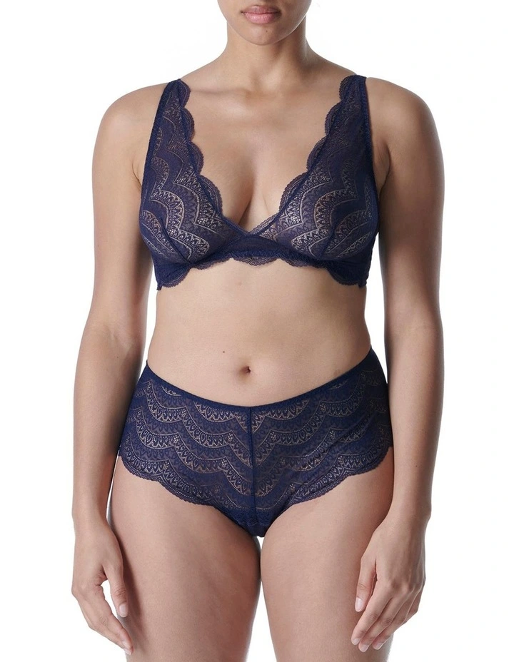The Karma Wirefree Bra, by Simone Perele, is a triangle bralette designed to add a touch of elegance to everyday lingerie. Crafted with Italian Jacquard lace and scalloped detailing for an elegant touch, flattering on any body shape.