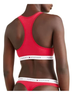 The racerback design and stretchy branded underband of this pull-on bralette give it a sporty vibe.