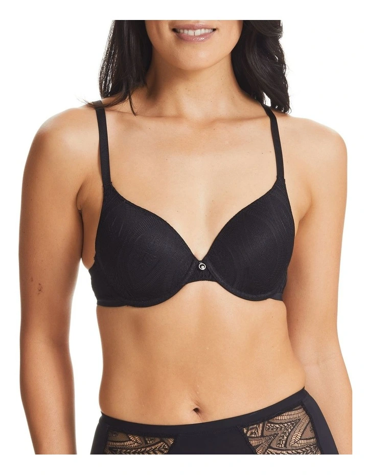 T Shirt bra with feminine yet graphic lace and silver hardware for a touch of glamour.Β Β